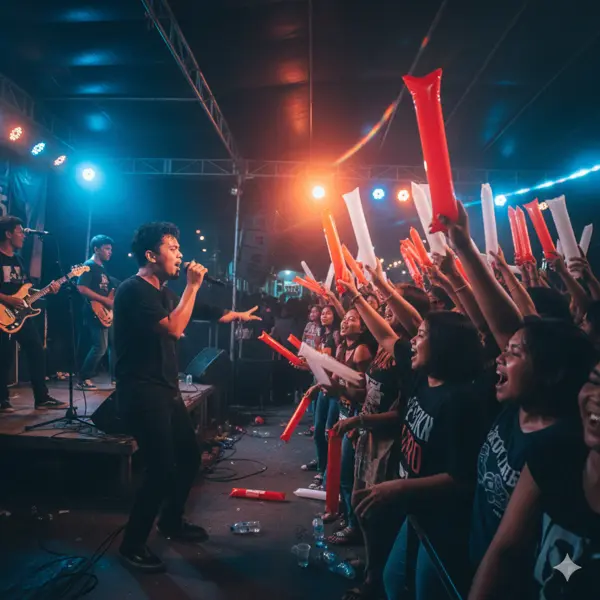 Dalam konser musik atau festival, balon tepuk membantu menciptakan suasana ramai dan meriah, sekaligus menambah visual yang atraktif bagi penonton sehingga pengalaman menonton lebih menyenangkan.