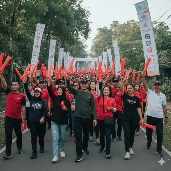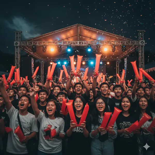Balon tepuk tidak terbatas pada event olahraga saja. Konser musik, festival, promosi produk, kampanye politik, maupun acara komunitas bisa memanfaatkan balon tepuk. Dengan layanan custom desain, warna, dan logo dapat disesuaikan agar selaras dengan tema dan branding acara.